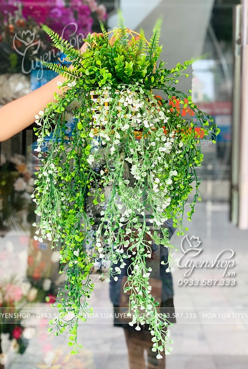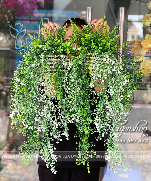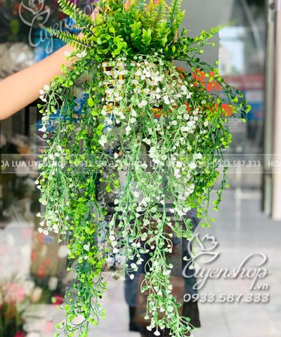 Hoa giả, Hoa lụa đẹp, GIỎ LÁ RỦ CHUÔNG TREO TƯỜNG