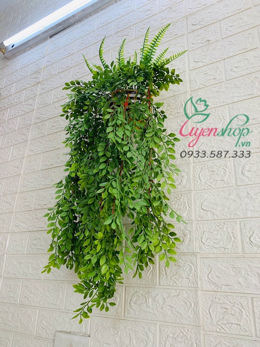 Giỏ lá treo tường màu xanh tươi mát, trang trí phòng khách, nhà hàng, quán cà phê, spa,…