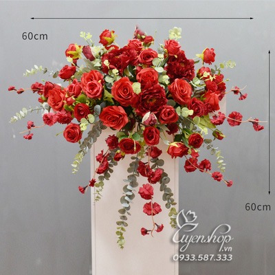 Shop gợi ý một trong những mẫu hoa để bục phát biểu đẹp nhất với tone đỏ rực rỡ, bục treo nên có thể dễ dàng di chuyển.