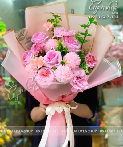 Zoom với BÓ HOA LỤA TONE HỒNG