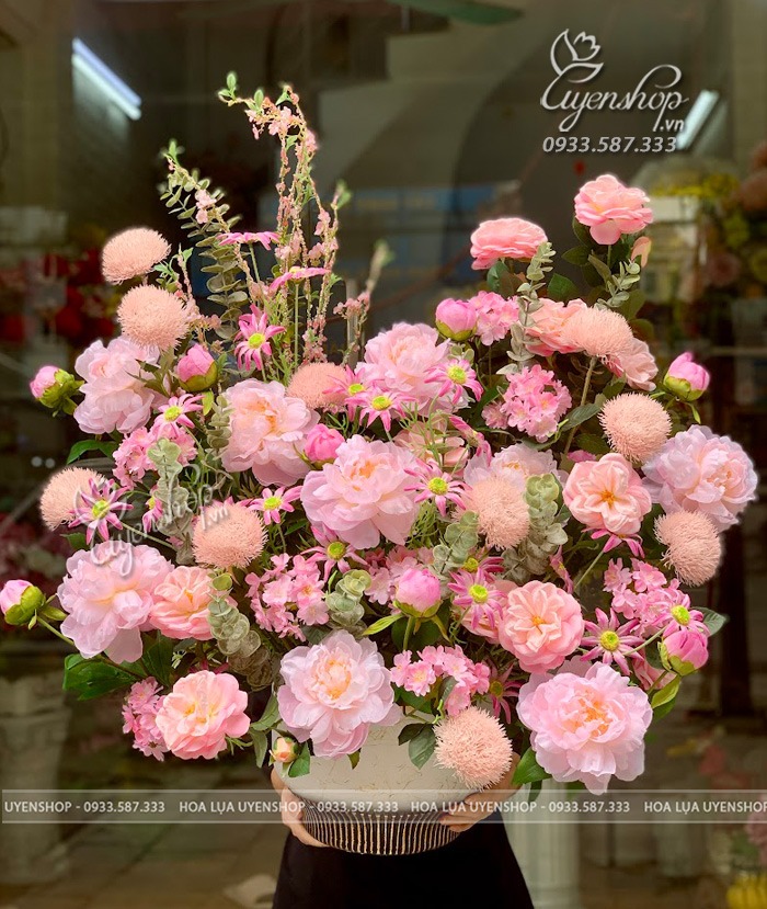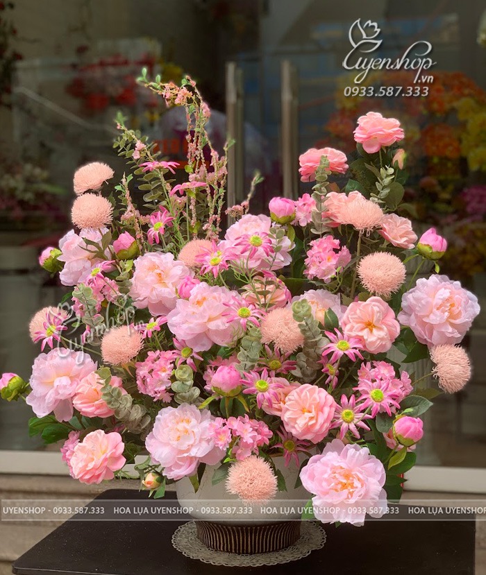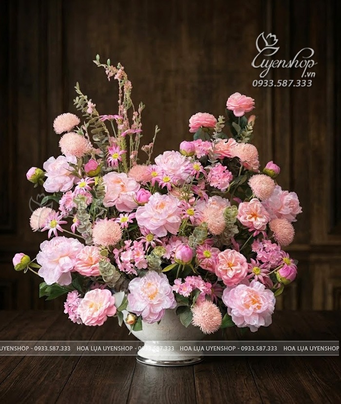 Sự hòa quyện của sắc hồng pastel dịu dàng cùng dáng hoa nở tròn đầy tạo nên tổng thể mềm mại, thanh lịch và đầy sức sống. Bình hoa mang đến cảm giác ấm áp, tươi mới, giúp không gian thêm nổi bật và tinh tế.