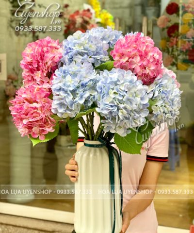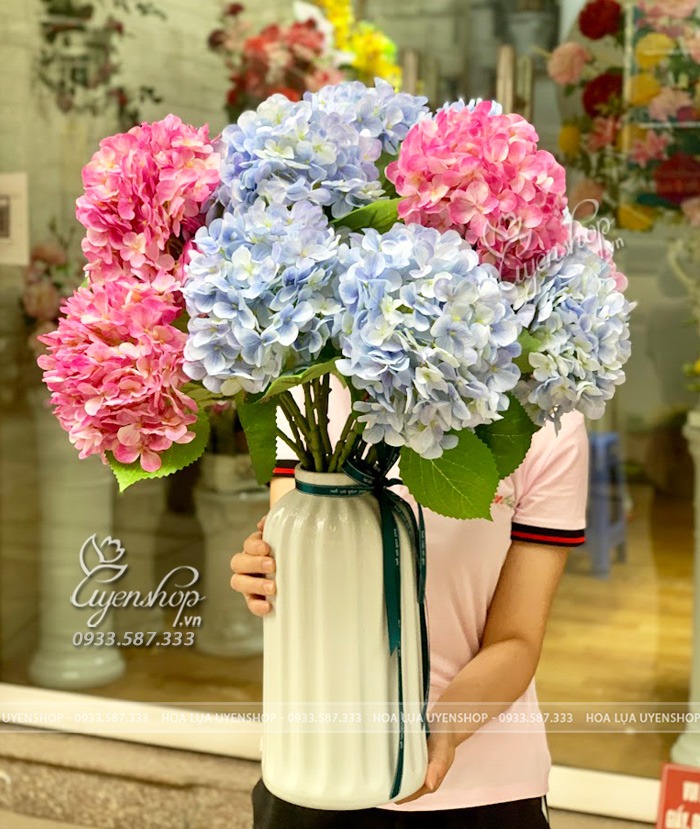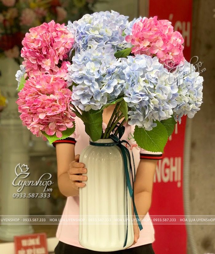 🌿 Bình hoa cẩm tú cầu hồng – xanh pastel dịu dàng 🌿
