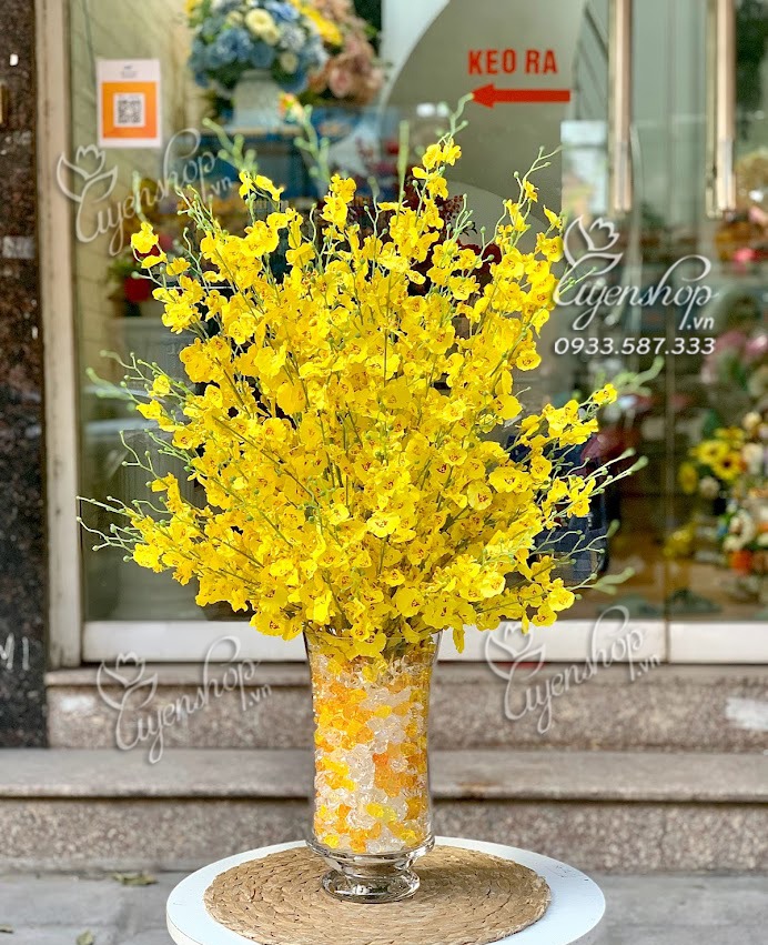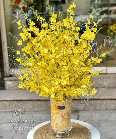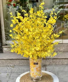 Bình Lan Vũ Nữ với tông màu vàng sang trọng phù hợp cho bạn trang trí tại phòng khách, những bông hoa thẳng dài vươn lên mạnh mẽ. Có thể làm quà tặng tân gia, tặng sếp…