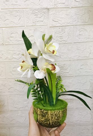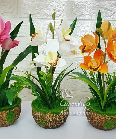 Chậu Địa Lan nhỏ rất xinh xắn, bạn có thể trang trí trên bàn làm việc để lúc nào trên bàn cũng có hoa, ở nhà bạn đặt lên kệ tủ, các ô vuông…