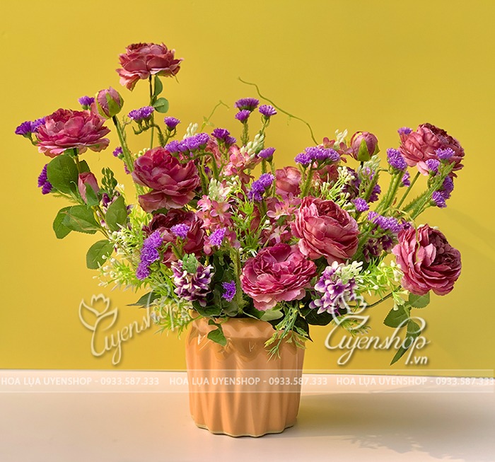 Lọ Hoa với tone Tím đẹp dịu dàng, tượng trưng cho niềm say mê và sự gắn bó. Một bình hoa có thể làm quà tặng người thương để thể hiện tình cảm và lưu giữ được lâu. Trang trí trong nhà lúc nào cũng cảm thấy yêu đời và mộng mơ…