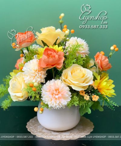 Một bình hoa nhỏ xinh trang trí bàn phòng khách, phòng làm việc hay quán cà phê,… thì sẽ là điểm nhấn nổi bật cho không gian sống của bạn.