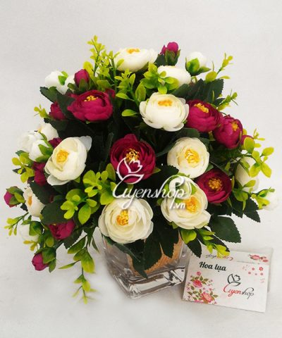 Kích thước: Bình hoa cao 35cm, xòe rộng 30cm.