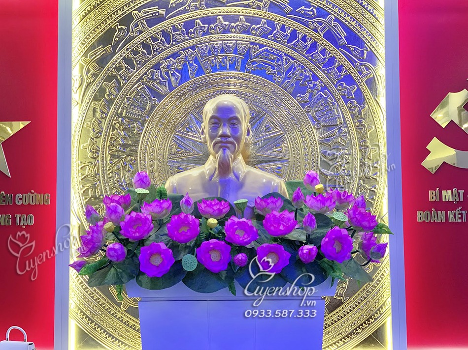 Có rất nhiều loại hoa để lựa chọn cắm tượng Bác Hồ, nhưng Hoa Sen vẫn là loại hoa được sử dụng nhiều nhất và được mọi người tin dùng, bởi không chỉ vẻ đẹp của hoa sen mà là vì Hoa Sen sẽ làm tượng Bác trang trọng hơn. Hoa Sen còn là biểu tượng Quốc hoa của Việt Nam.